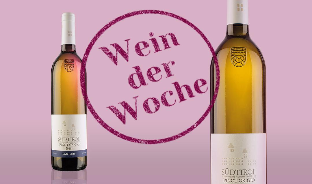 Der Wein, den wir Ihnen diese Woche empfehlen, ist ein starker Allrounder, der zu vielen Gerichten und Anlässen passt. Es ist der Pinot Grigio aus der Kellerei Muri-Gries in Südtirol. Er schmeckt fruchtig mit Noten von reifen Birnen, schwarzem Tee, Minze und Melisse. Küchenchef Thorsten Grell aus unserem Restaurant Das Landhaus in Boltenhagen findet: Der Perfekte Begleiter für ein Kalbsschnitzel in Quinoa-Panade mit Selleriesalat, Salsa verde und Nussbutter. Mmmmh.