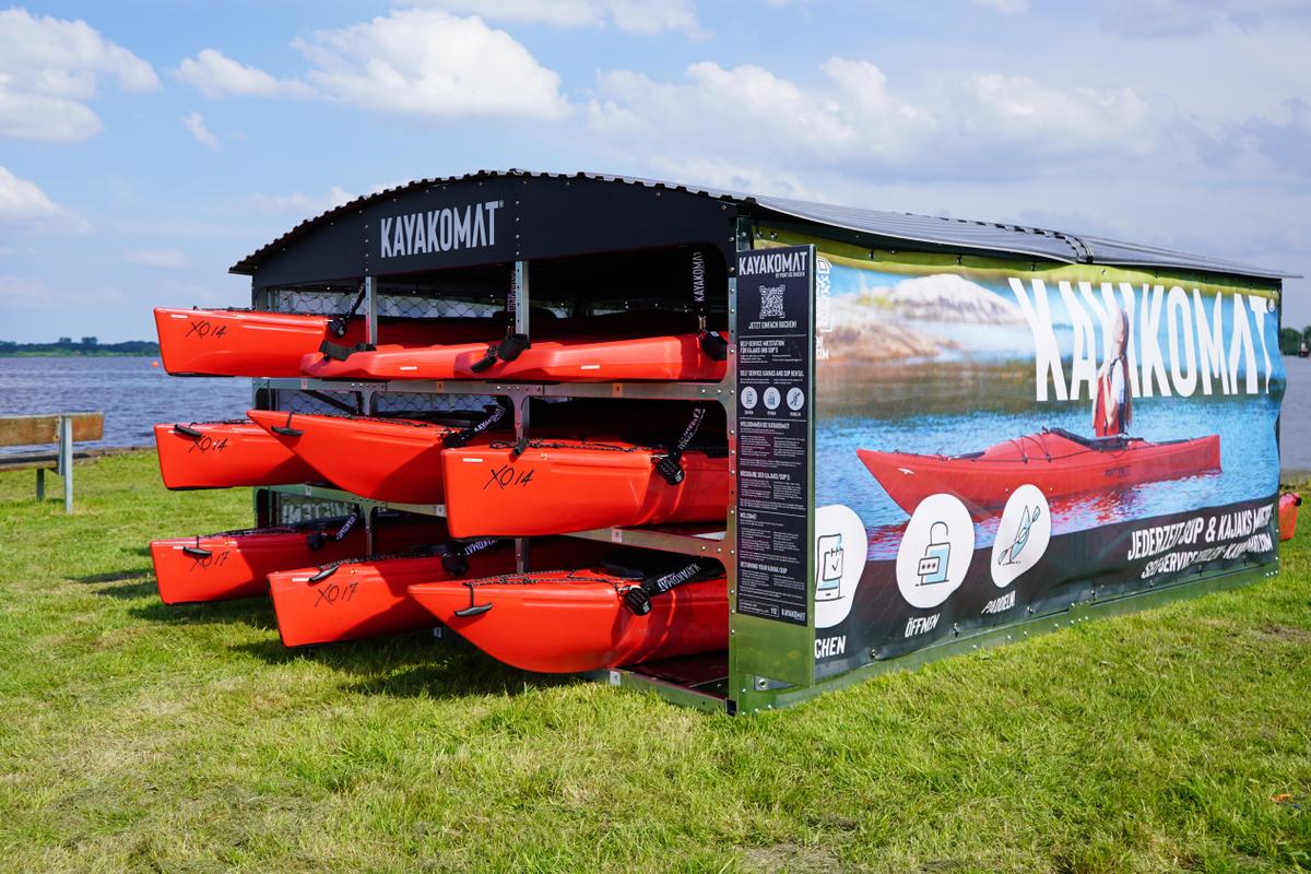 Paddeln, wann immer ihr Lust habt: Am Kayakomat lassen sich Kayaks und SUPs (Stand Up Paddling) ganz unkompliziert per App ausleihen. Startet direkt am Kanal zu einer Tour durch die Natur – perfekt für sportliche Aktive, Familien oder einfach zum Abschalten in der Stille des Wassers.