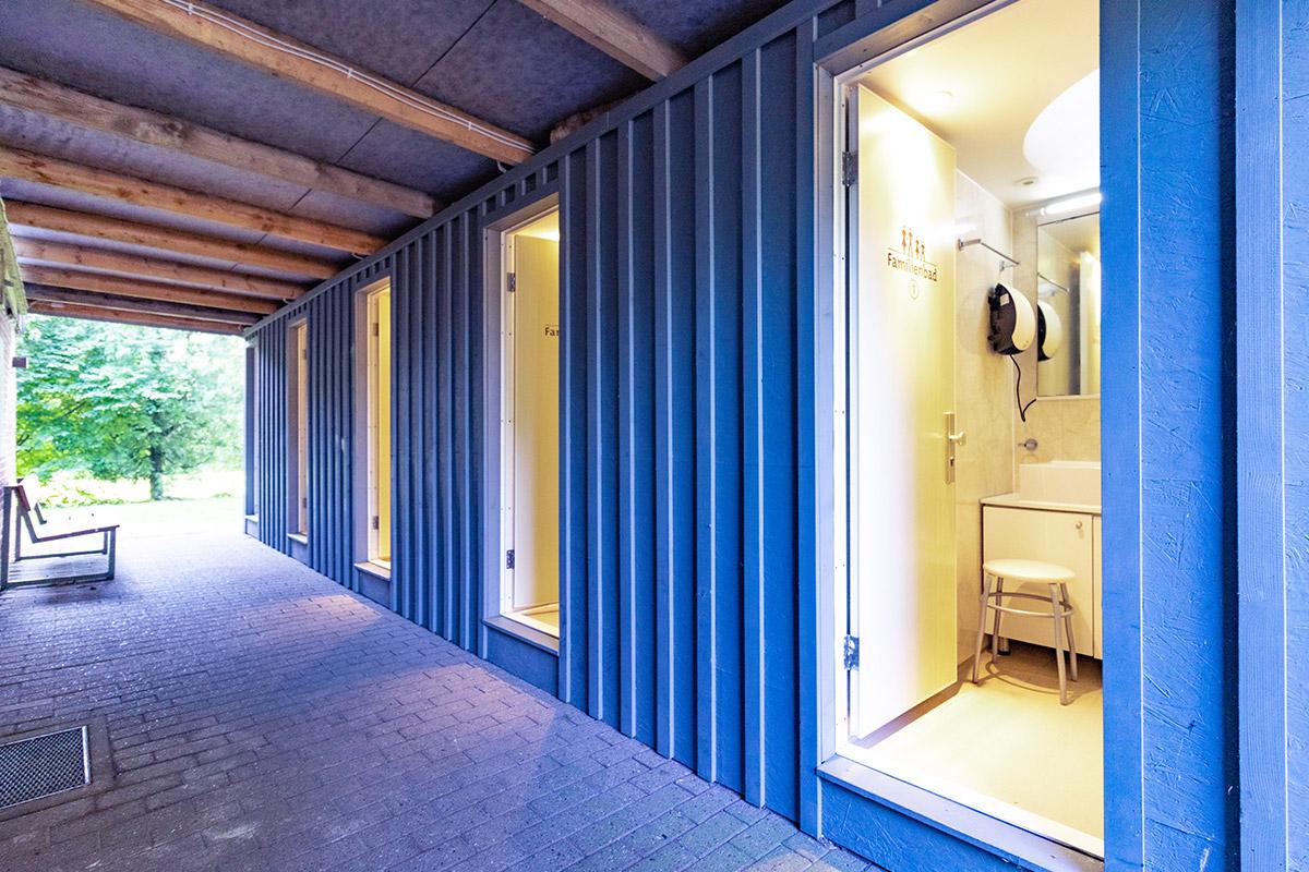 Mit unseren Komfortbädern verbinden Sie die Vorteile des Campings mit dem Komfort eines eigenen Badezimmers. Komplett inklusive privater Dusche mit WC, Waschbecken und Spiegel. Die praktischen Komfortbäder können Sie schon ab zwei Nächten und für die gesamte Dauer Ihres Aufenthaltes buchen.