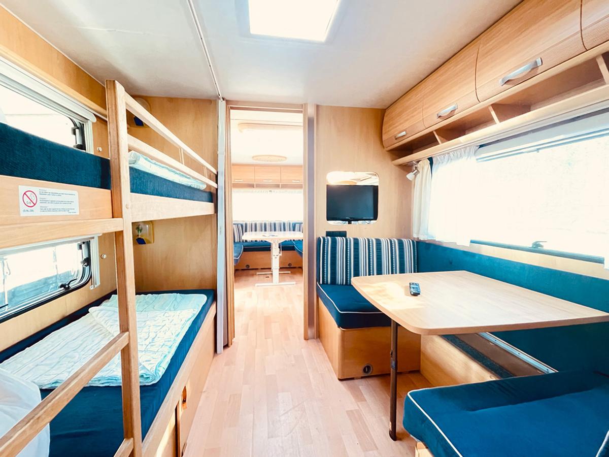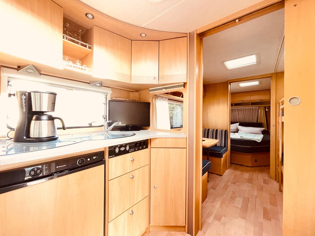 Urlaub mit dem Wohnwagen: optimal für alle, die nahe an der Natur sein möchten, ohne dabei auf den gewohnten Komfort zu verzichten. Unsere Mietwohnwagen sind mit allem ausgestattet, was Sie für Ihre Erholung brauchen. Hier können bis zu 4 Personen gemütlich wohnen, ausspannen und sich wohlfühlen. Auf rund 10 qm Wohnfläche können die Großen in und vor dem Wohnwagen in aller Ruhe ausspannen, während die Kinder auf der Ferienanlage herumtollen.