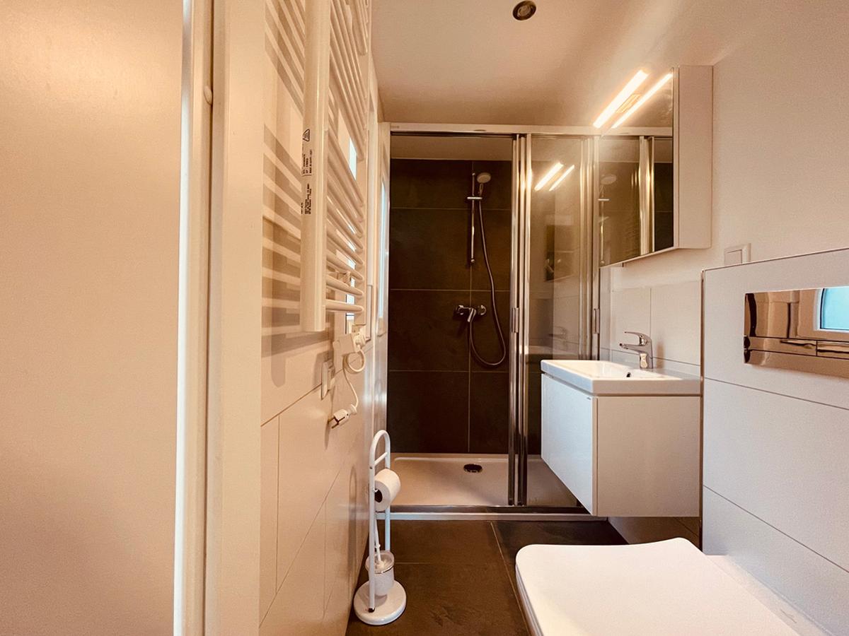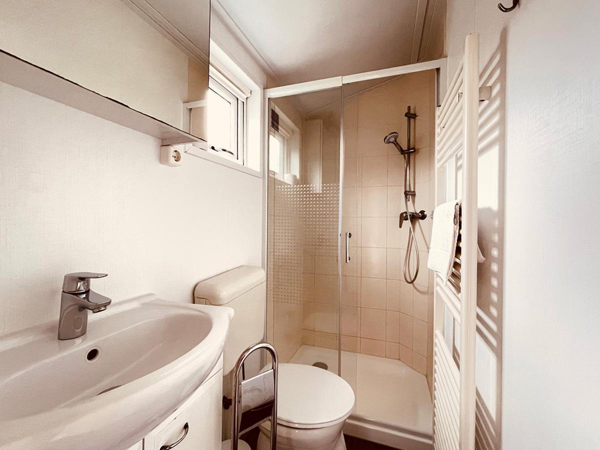 Mit unseren Komfortbädern verbinden Sie die Vorteile des Campings mit dem Komfort eines eigenen Badezimmers. Komplett mit privater Dusche, WC, Waschbecken und Spiegel. Die praktischen Komfortbäder können Sie schon ab zwei Nächten und für die gesamte Dauer Ihres Aufenthaltes buchen.