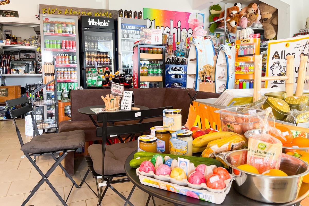 Beginnen Sie Ihren Morgen mit frischen Brötchen und leckerem Kaffee – direkt bei uns auf dem Platz. In Flo's kleiner Welt auf unserer Ferienanlage starten Sie genussvoll in den Urlaubstag. Und sonst? Sonst gibts hier alles, was das Camperherz benötigt: einen kleinen Supermarkt unter anderem mit Geschenkartikeln und Campingbedarf, einen Backshop mit Kaffee und Kuchen und vieles mehr.