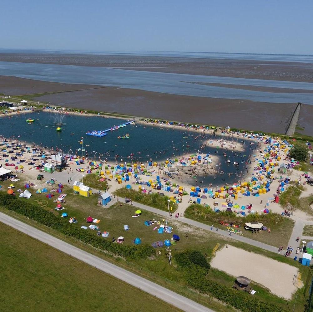 Keine Lust auf Ebbe und Flut? Dann solltet ihr auf keinen Fall die Nordsee-Lagune Butjadingen verpassen. Die kostet zwar etwas Eintritt, liegt aber direkt neben der Regenbogen Ferienanlage Burhave und bietet mit 16.000 Quadratmetern jede Menge Platz zum Schwimmen, Plantschen und Toben. Außerdem gibt es hier auch extra flache Bereiche für Anfänger:innen, Tretboote für die ganze Familie und Sportmöglichkeiten zu Wasser und zu Land. Pirateninsel mitten in der Lagune inklusive.