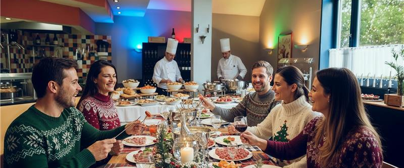 Genießt vom 27. Dezember bis 3. Januar einen genussvollen Abend für 2 bis 12 Personen mit Fondue Chinoise* – der asiatischen Fondue-Spezialität: Fondue in der Bouillon mit Fleisch- und Fischsorten, frischem Gemüse und passenden Beilagen. Dazu empfehlen wir natürlich gerne den passenden Wein als Begleitung.