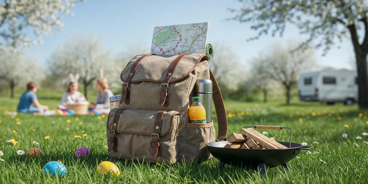 Picknick-Rucksack mit Wanderroute für Osterwanderung