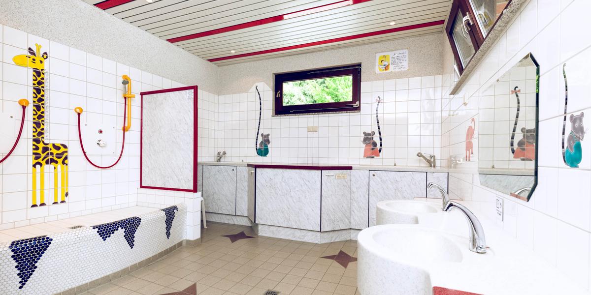 Abenteuer inmitten schönster Natur sind einfach super. Abenteuer in Waschräumen, Duschen oder Toiletten eher nicht. Deswegen erwartet Sie auf Regenbogen Ferienanlagen, auf denen Sie unsere Mini-Max-Familienangebote buchen können, Kinderbäder mit kindgerechter Ausstattung, Babybadewannen, Wärmestrahlern oder erhöhten Duschen und Kindertoiletten. Das macht die Sache deutlich leichter und Sie haben die Privatsphäre, die Sie und Ihre Kinder brauchen.